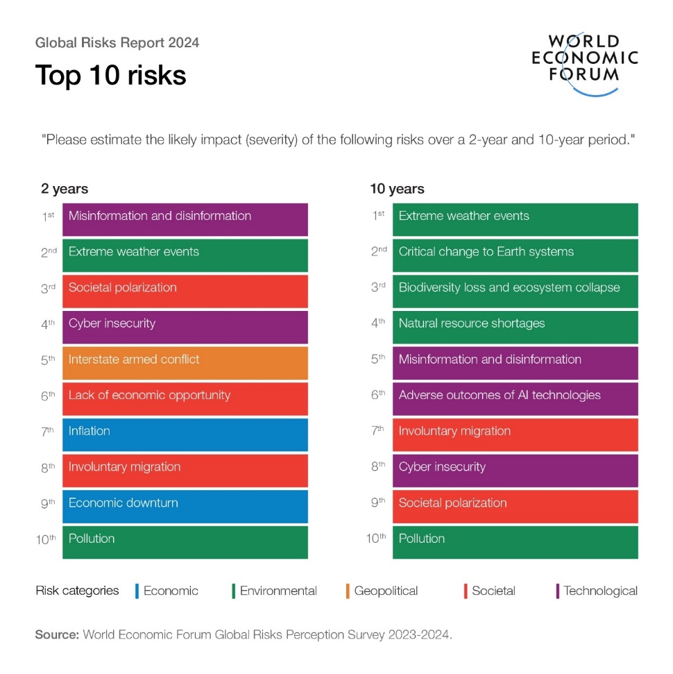 Risques mondiaux 2024 : la désinformation en tête des risques mondiaux en 2024 à mesure que les menaces environnementales s'intensifient